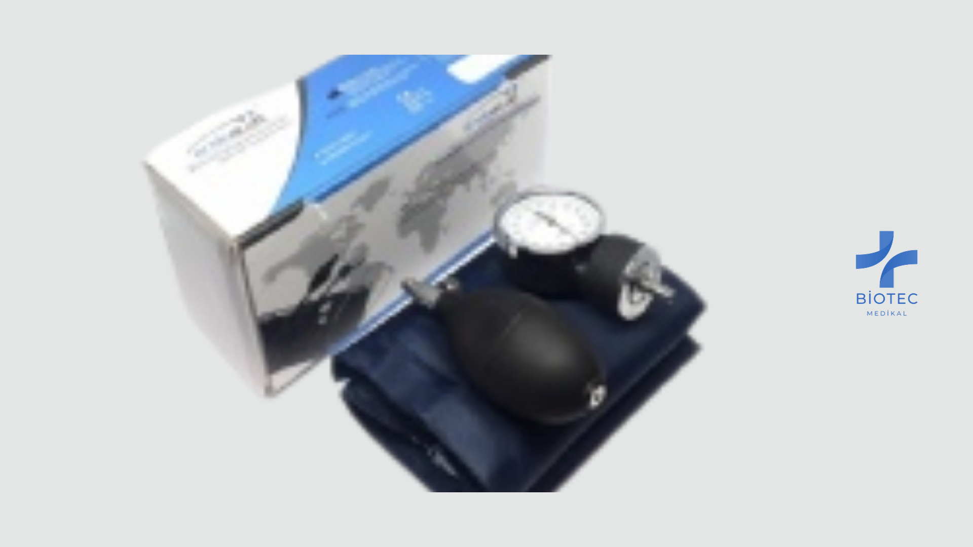 Yetişkin hastalarda doğru kan basıncı ölçümü için klasik manşet ve manometreli manuel tansiyon aleti.